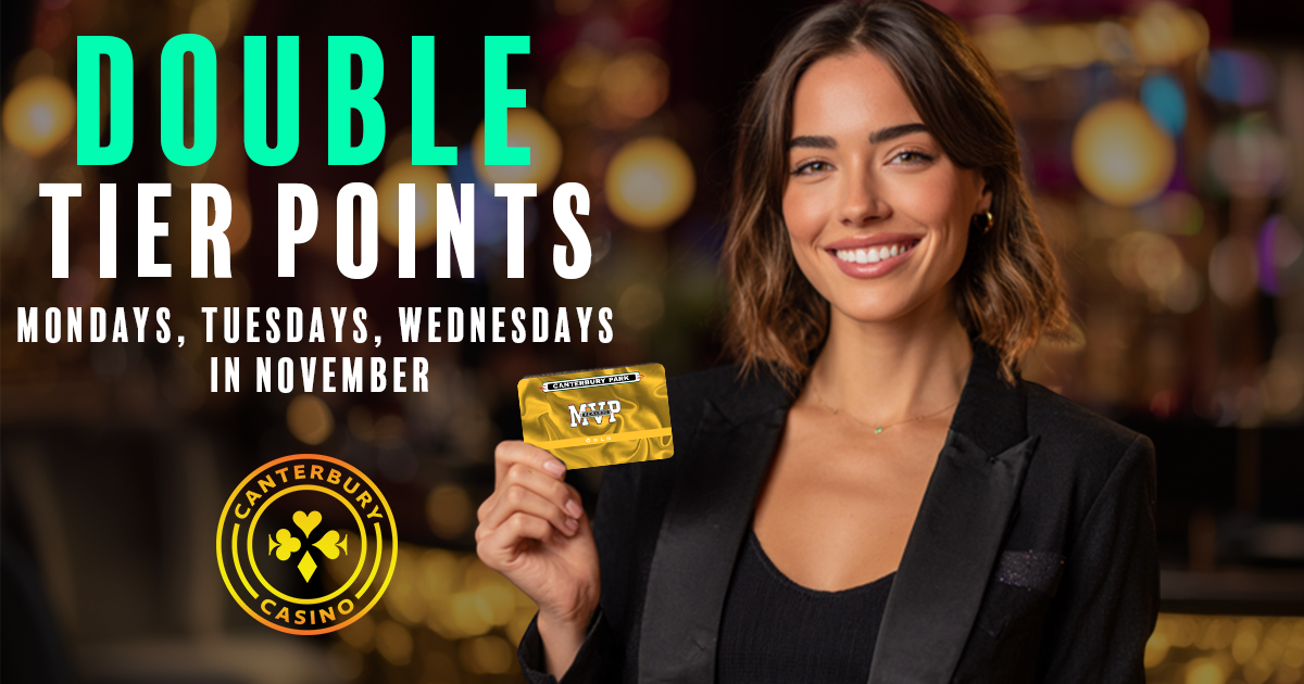 Let us give you a jump to the finish line. Join us every Monday, Tuesday and Wednesday in November for Double Tier Point Days. Your status resets December 31, so now’s the time to level up faster. Check your current status at any Rewards kiosk or stop by the Rewards desk.